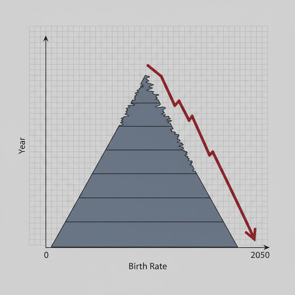 ![clean data visualization, flat 2D chart, muted academic palette, no 3D effects, evidence-based presentation, professional infographic, minimal decoration, clear axis labels, scholarly aesthetic, a large, two-dimensional demographic pyramid drawn in precise ink lines on a muted gray grid background, its upper tiers sharply narrowed and edges slightly torn as if unraveling, axis labels in clean sans-serif font showing 'Birth Rate' and 'Year' with a downward-trending red line extending beyond 2050, flat overhead lighting, atmosphere of clinical precision undercut by silent decline [Nano Banana] clean data visualization, flat 2D chart, muted academic palette, no 3D effects, evidence-based presentation, professional infographic, minimal decoration, clear axis labels, scholarly aesthetic, a large, two-dimensional demographic pyramid drawn in precise ink lines on a muted gray grid background, its upper tiers sharply narrowed and edges slightly torn as if unraveling, axis labels in clean sans-serif font showing 'Birth Rate' and 'Year' with a downward-trending red line extending beyond 2050, flat overhead lighting, atmosphere of clinical precision undercut by silent decline [Nano Banana]](https://081x4rbriqin1aej.public.blob.vercel-storage.com/viral-images/49114097-6b0f-4f6d-8a26-fad4012fa0b9_viral_4_square.png)